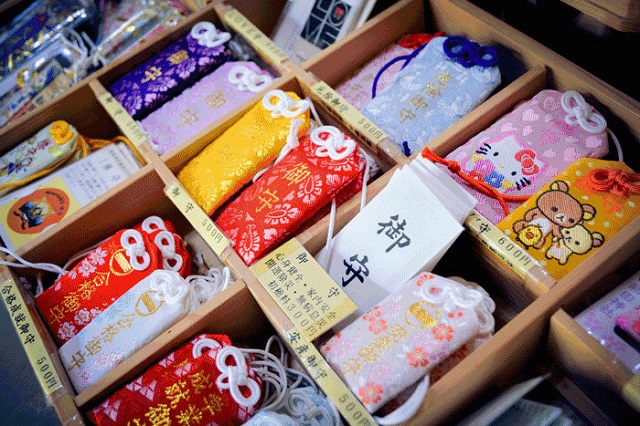 Đi dạo qua những gian hàng đầy màu sắc tại các đền thờ Thần đạo và các ngôi chùa là trải nghiệm thú vị dành cho du khách mua vé máy bay Japan Air đi Nhật Bản. Tại các gian hàng luôn mang đến cho du khách nhiều bất ngờ thú vị. Chẳng hạn như những món trang sức nhỏ xinh được kết từ hạt cườm nhỏ, túi vải nhỏ, những tờ giấy nhỏ… Những món đồ được bán này không chỉ để gây quỹ cho đền, chùa mà còn là những món trang trí nhỏ để du khách có thể mang theo bên mình hoặc làm quà tặng. Trong đó, bùa hộ mệnh Omamori – một nét dẹp trong văn hóa truyền thống Nhật Bản thu hút sự tò mò của du khách nhiều nhất. Bởi đây là món đồ đem lại sự may mắn.