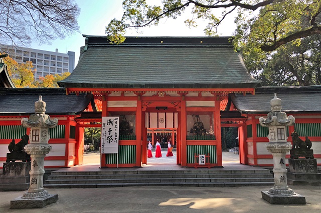 Sumiyoshi-jinja là một trong những địa điểm lâu đời nhất ở Fukuoka. Ngôi đền này khá giống với ngôi đền ở Osaka, thờ các vị thần bảo vệ những người đi biển. Điểm đặc biệt ấn tượng nhất của đền Sumiyoshi-jinja là hội trường chính được xây dựng lại theo phong cách cổ điển hiện tại vào năm 1623. Các điểm tham quan nổi bật khác gồm có một số bảo vật quan trọng cấp quốc gia. Điển hình là thanh kiếm cổ và rìu đồng cùng với các bản thảo và tài liệu cũ từ thời trung cổ.
