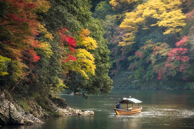 Ngồi thuyền thưởng ngoạn cảnh thu dọc theo sông Hozu là trải nghiệm bạn nên làm