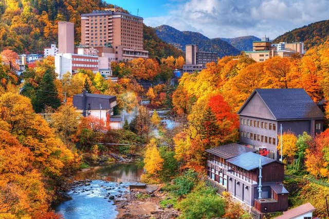 Thị trấn suối nước nóng Jozankei cũng là một địa điểm du lịch nổi tiếng vào mùa thu ở Nhật Bản