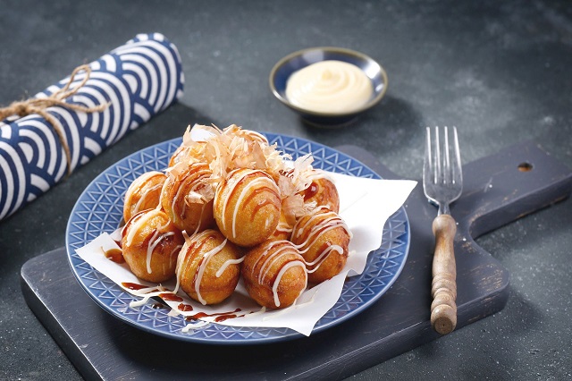 Takoyaki hiểu đơn giản là bánh bạch tuộc (tako) nướng (yaki). Bánh vo viên, làm bằng bột mì, phần nhân là bạch tuộc ăn kèm với nước sốt đặc trưng gồm có sốt takoyaki, mayonnaise. Khi phục vụ phần ăn, bên trên những viên bạch tuộc tròn xinh sẽ có thêm hành tây, rong biển khô, cá bào.
