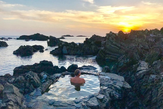 Ở suối nước nóng Hirauchi Kaichu bạn vừa được ngâm mình trong nước ấm vừa tận hưởng cảnh biển tuyệt đẹp