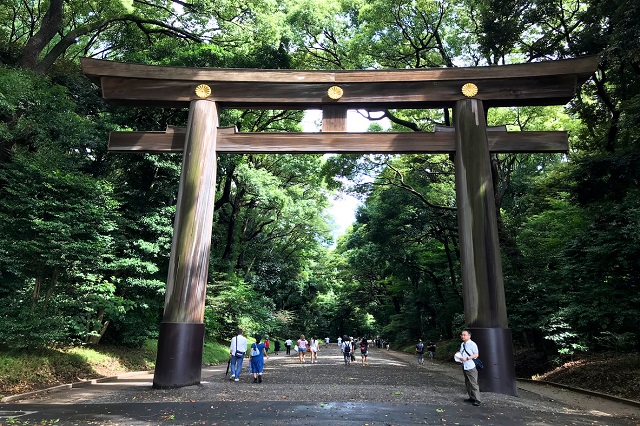 Đền đã từng bị phá hủy trong thế chiến thứ hai và được xây dựng lại vào năm 1960. Điều này đủ thấy được tầm quan trọng và sự linh thiêng của ngôi đền cũng như Nhật Hoàng trong lòng người dân Tokyo. Để vào được nơi thờ tự chính của đền, từ cổng Nam hoặc cổng Bắc bạn sẽ đi bộ khoảng 10 phút. Cuối con đường có cổng gỗ torri đặc trưng là đến được miếu chính. Đường đi rất dễ dàng và được phủ đầy bóng mát, bạn cũng có thể dừng lại chụp ảnh nếu thích.