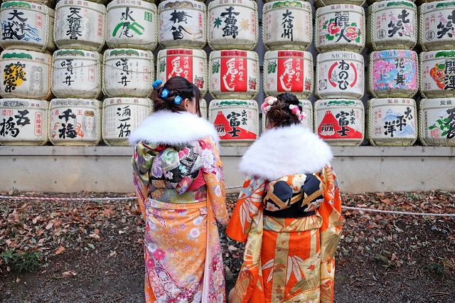 Mặc trang phục truyền thống viếng đền Meiju Jingu là điều được nhiều người Nhật thực hiện