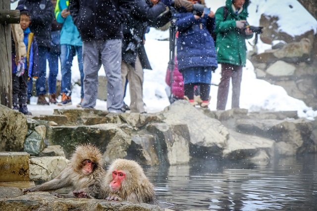 Thực tế, người ta đã quan sát những chú khỉ thường tắm tại công viên khỉ Jigokudani trong nhiều năm như một cách để chúng giữ ấm cơ thể trong mùa đông khắc nghiệt ở Nagano. Giữa bốn bề là tuyết, những chú khỉ đang ngồi yên trong làn nước bốc hơi như thể đang tận hưởng hơi ấm và sự thư giãn khi những bông tuyết rơi xuống mặt chúng. Bạn cũng bắt gặp những chú khỉ nằm thư giãn trên những tảng đá xung quanh, thậm chí trên đường đi bộ.