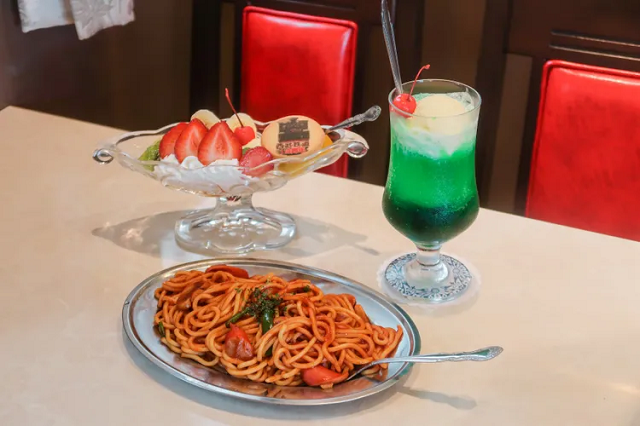 Món bạn nên thử khi đến quán cà phê Victoria là món Melon cream soda – sự kết hợp giữa dưa lưới, kem vani và anh đào maraschino. Một món ăn phổ biến khác của thời Showa mà bạn tìm thấy ở quán là Spaghetti Napolitan. Các lựa chọn ăn uống khác cũng hấp dẫn không kém.